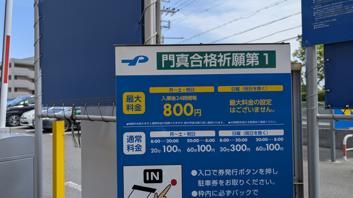 なんとも素晴らしい名前のコインパーキングに車を駐めました。今日は試験じゃありませんけども。