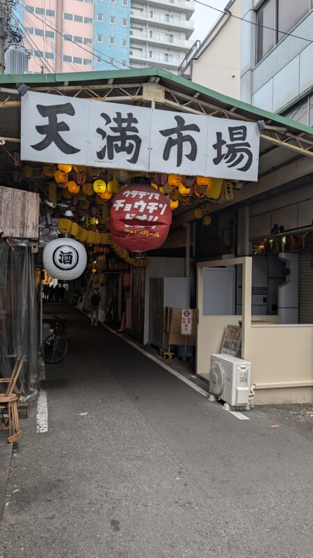 天満市場も屋台街に様変わりしていて、市場は2005年に建設された「ぷららてんま」というタワマンの下に移転したとか。