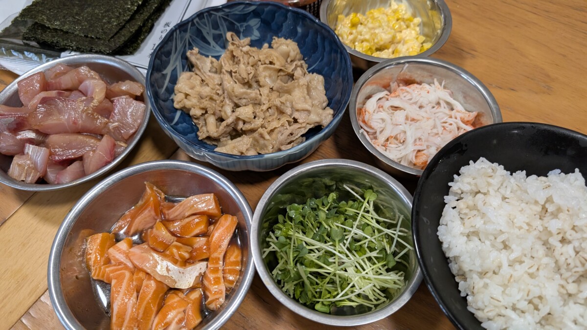誕生日パーティーは昔から変わらずの手巻き寿司。