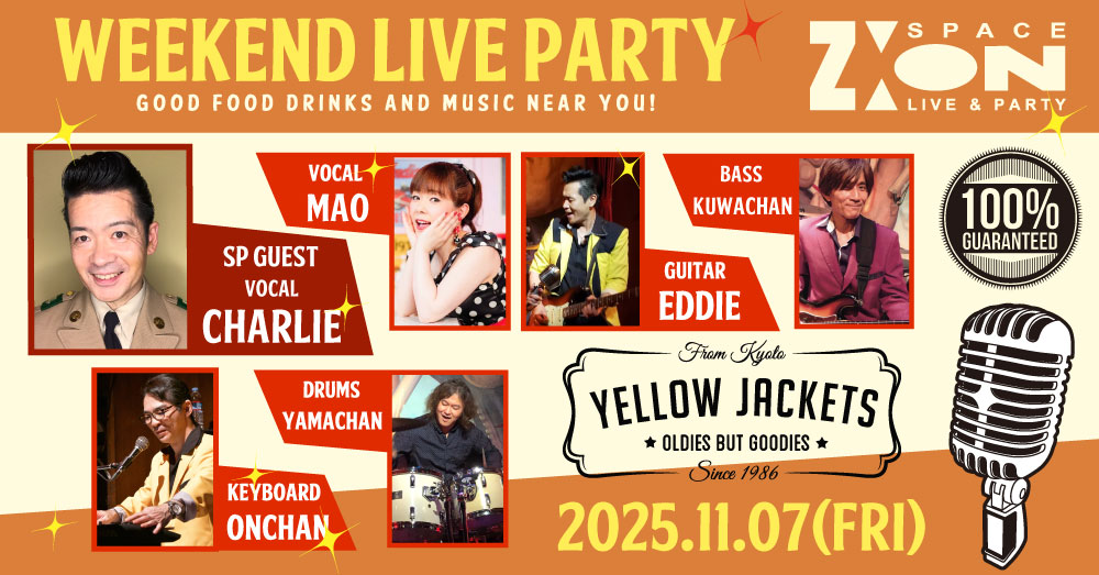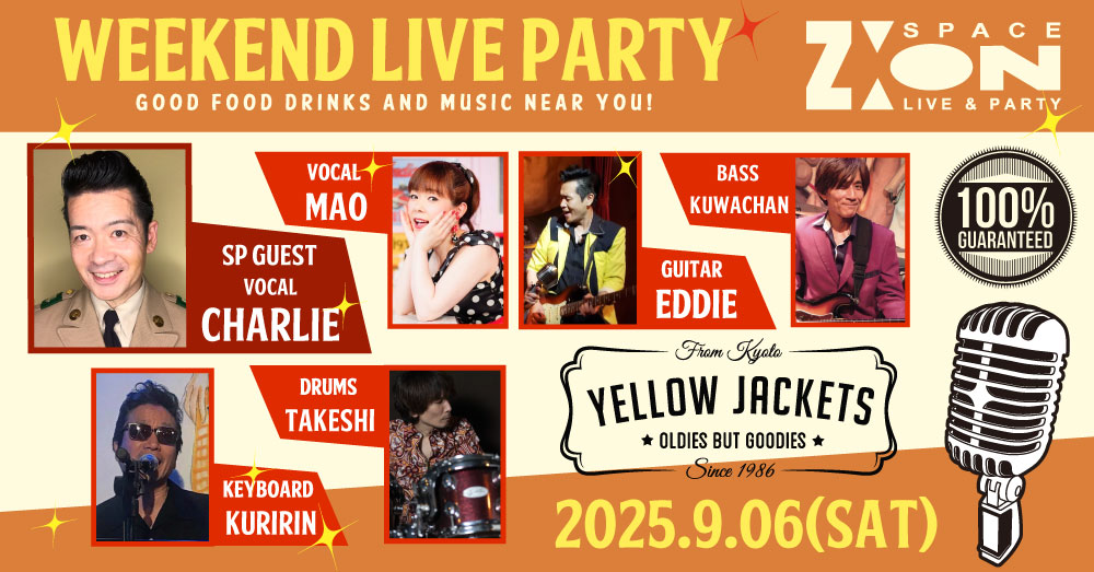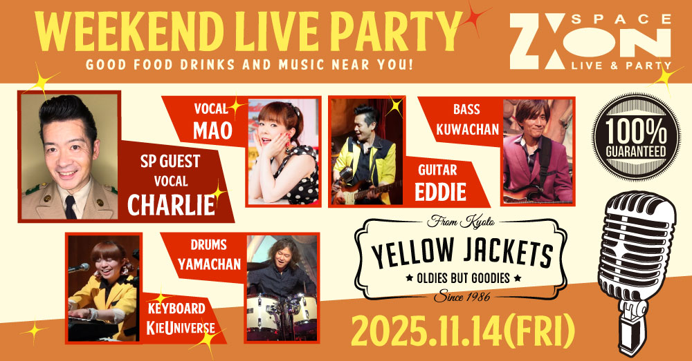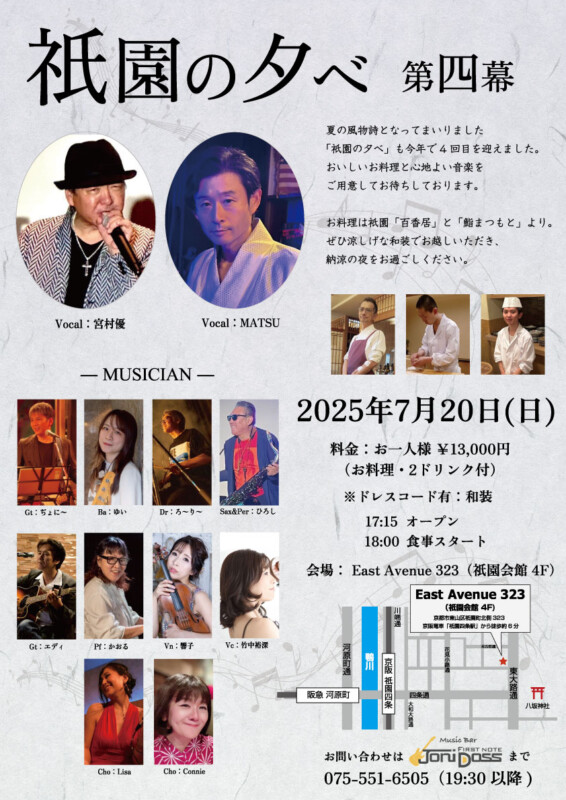 チャージ:2,500円(1フード・1ドリンクオーダー要)