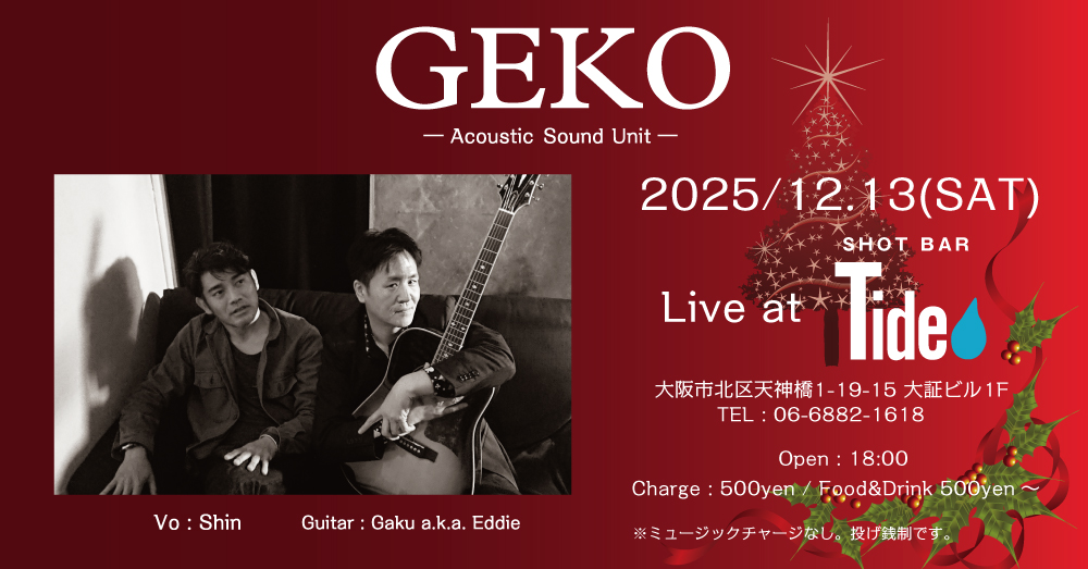 前売:2,000円+1Drink / 当日:2,500円+1Drink