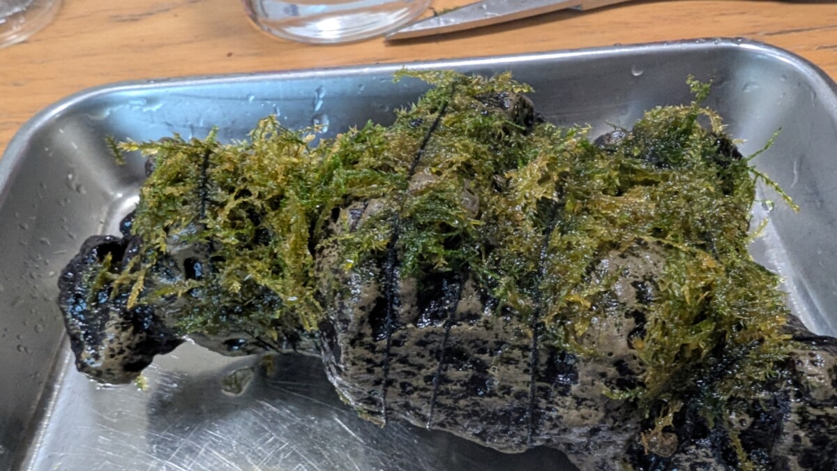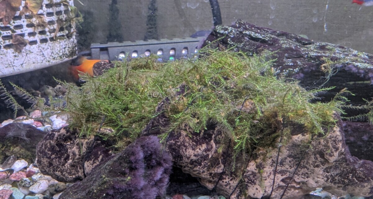ただし、水草とは違って何かに活着させないとダメってことなので、元々水槽内にあった石に巻き付ける事にしました。