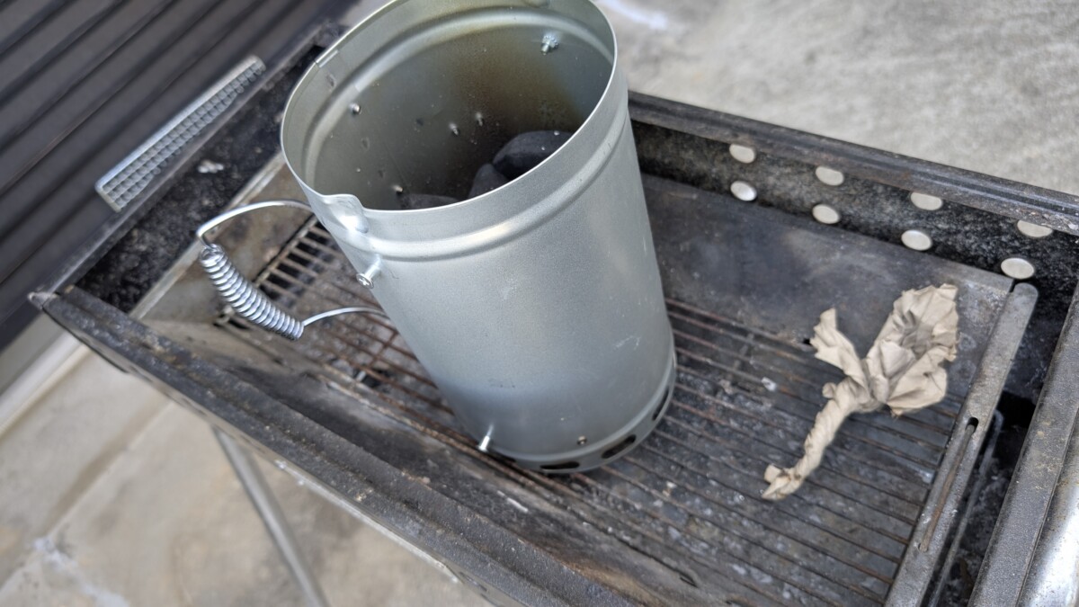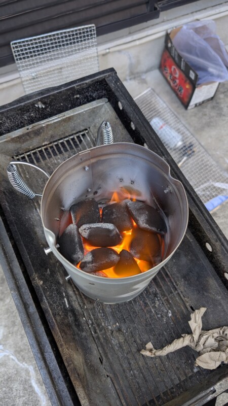 着火剤なんてものを知らなかった自分は炭を一つ、トングで持ってジッポーで炙ってました