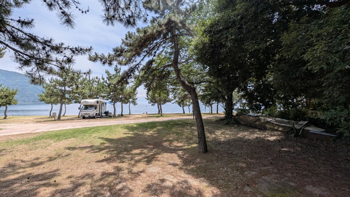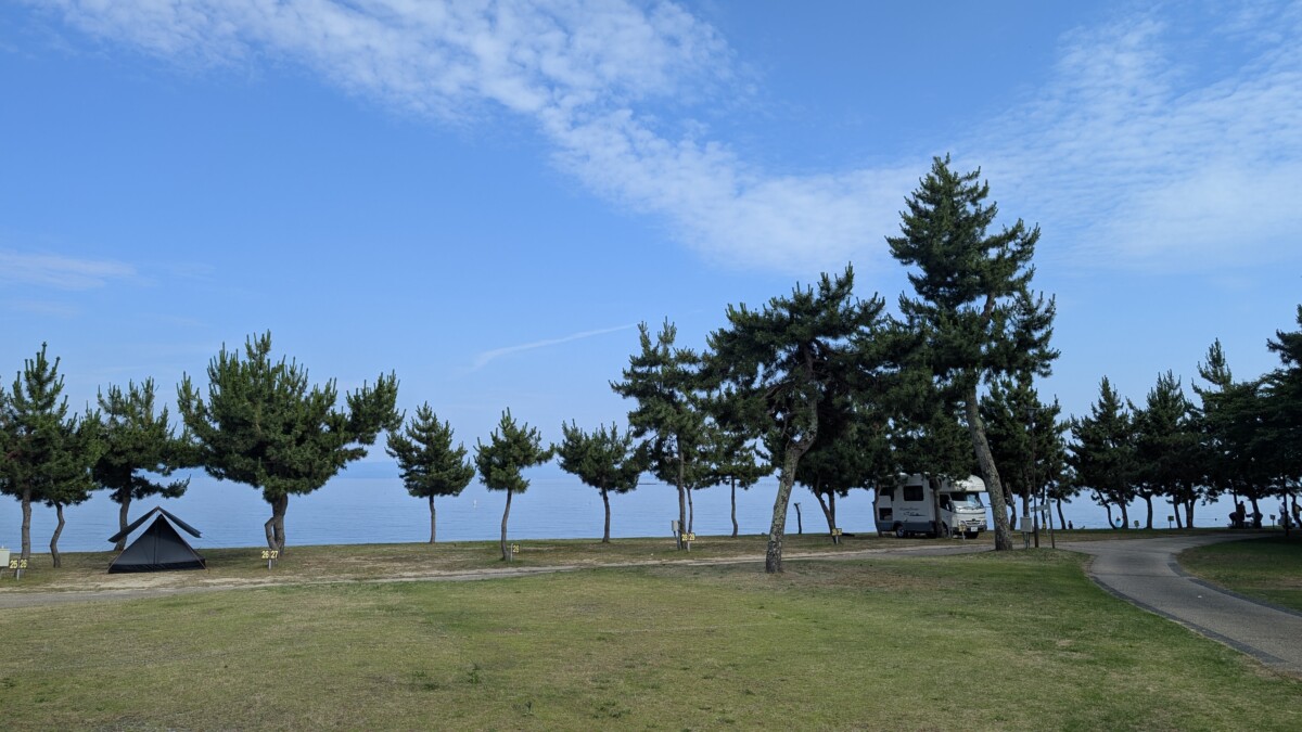 それなら日本海抜ける手前の琵琶湖やのう、と調べてみたらマキノサニービーチの高木浜オートキャンプ場を見つけました。