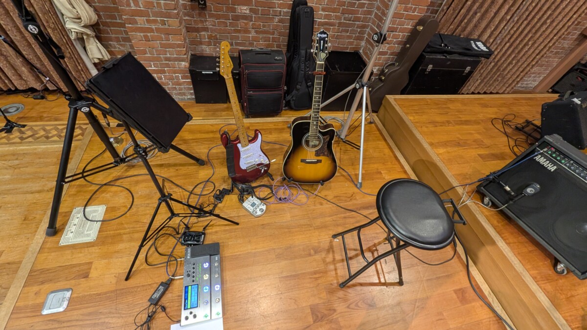 馴染みの赤ストラトとエピフォンのエレアコで、今年もせかせかと持ち替えながらアンサンブルに貢献しようかと。