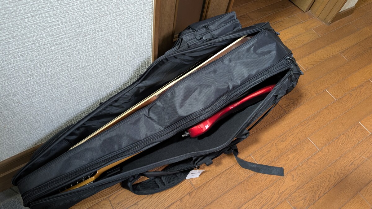 こんな感じで裏表で2つのギターケースがジッパーで貼り合わせてあります。